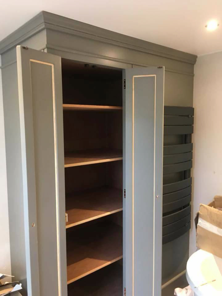 With fitted furniture, we give the option of carcasses built using sheet material. Unless necessary, we do not use MDF and will never construct furniture or kitchens using chipboard.